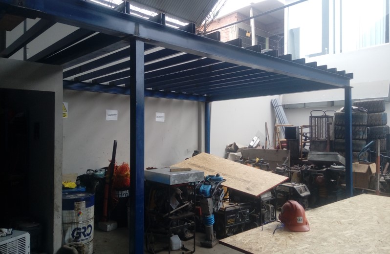 Los mezzanines modulares, duplican el uso del área de un almacen y permite habilitar áreas de almacenamiento tanto en el piso como en el segundo nivel. Esto se aplica en la construcción de oficinas en el nivel superior donde el usuario requiere un área segura y protegida de inundaciones, la estructura compuesta por postes, vigas y entrepiso metálicos o pisos de osb antideslizantes son totalmente desmontables y pueden ser re-ubicadas fácilmente.